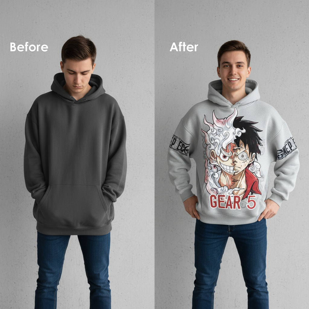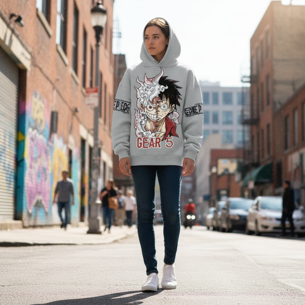 Sweat premium Luffy Gear 5 qui allie confort exceptionnel et style streetwear. Tissu doux, impression éclatante, durabilité garantie.